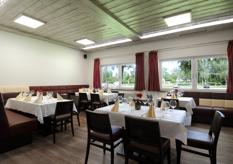 Das ansprechende Nebenzimmer kann für Familienfeiern, aber auch für Business-Treffen reserviert werden. Im Sommer laden die Terasse und der Biergarten zum Verweilen ein.